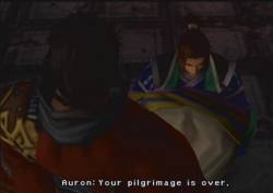 ![]() [Screen fades in on a series of jailcells hanging from the ceiling; they look like enclosed lamps, actually. Tidus screams] Tidus "Get me outta here! I want out now!" "You hear me?" [We see inside the jailcell. Auron is there as well] Auron "You waste your breath." [Tidus sighs and sits down] Tidus "Man, I hope Yuna's okay." Auron "She's strong. She'll make it." Tidus "She'll make it?" "What, so she can die?" [He sighs] "Why is it..." "everything in Spira seems to revolve around people dying?" Auron "Ah, the spiral of death." Tidus "Huh?" Auron "Summoners challenge the bringer of death, Sin, and die doing so." "Guardians give their lives to protect their summoner." "The fayth are the souls of the dead. Even the maesters of Yevon are unsent." "Spira is full of death." "Only Sin is reborn, and then only to bring more death." "It is a cycle of death, spiraling endlessly." [Tidus sighs. Screen fades to black. Fades back in on Kinoc walks on a walkway near the jailcell of Tidus and Auron] Kinoc "Come out. Your sentence has been decided." Auron "Sentence? Don't you mean execution?" Kinoc "Really, now, what person would execute a dear friend?" Auron "You would." [Screen fades to black. Fades back in on a stone floor..several guards with rifles are standing behind Tidus; in front of Tidus is a small pool of water] "Looks like you're next!" Tidus "Next for what?" [The guard pushes Tidus into the water] "Get going!" Tidus "Where's everybody else?" "Floating down there somewhere, maybe." [Tidus swims. He meets Wakka] Wakka "Oooh! You made it!" [They high-five each other. Rikku swims on screen] Tidus "What's our sentence?" Wakka "Think they expect us to give up and die down here." Tidus "Well, that's a lame way to kill someone." Rikku "Where's Yunie?" Tidus "I don't know." Rikku "Wonder if we should wait for her..." Tidus "Hmm..." "Let's wait at the exit." Rikku "If there is an exit." [Screen changes to Mika, Seymour, and Kinoc, talking to each other] Mika "How fares the Ronso maester?" Seymour "It seems my father's murder troubles him." [Mika laughs] Mika "Ever the Ronso." "Hard-headed, hardly useful." Seymour "However..." "The summoner Yuna, daughter to High Summoner Braska..." "She may be of some use to us alive." Mika [Turns away from Seymour] "She has disturbed the order of Yevon." "She cannot be allowed to live." Seymour "I understand." [He bows] Kinoc "Let it go, Seymour." "No one thrown into the Via Purifico has ever survived." Mika "Yet there is always a small chance that they might." "Place guards at the exit. Kill any who emerge." Seymour [He bows again] "Sir. Leave that to me." Mika "First your father, now your bride?" Seymour "Allow me to do this because she is my bride." Kinoc "Wait. I will go, too." Seymour "You do not trust me?" Kinoc "Would you trust a man who murdered his father?" Seymour "Very well. As you wish." [Seymour leaves: screen fades to black] "Lady Yuna, forgive me." [Screen fades in on Yuna. She's in the Via Purifico, which is a dungeon/maze. She makes her way through it. Along the way, she meets Kimahri] Kimahri "Yuna, sorry we left you alone." Yuna "No, it's okay." [They continue, meeting Auron] Auron "There must be an exit somewhere. We search!" [You can probably find Lulu in here too....though I never did. Anyways, in one room, the group finds....Isaaru!] Isaaru "Lady Yuna... So it is you!" Yuna "Why are you here?" Isaaru "We rode the airship to the Calm Lands, then came to Bevelle." "Maester Kinoc summoned us then. Ordered us to "deal with the traitors."" Auron "You will fight us?" Isaaru "The temple's orders are law." "Even if you are Lord Braska's flesh and blood..." "You're a traitor!" "Forgive me, Lady Yuna." [Yuna steps forward. One on one boss battle begins; Yuna and her aeons against Isaaru and his. He uses Ifrit (Grothia), Valefor (Pterya), and Bahamut (Spathi). They all get destroyed. Poor Isaaru..ahahaha. After the battle, Isaaru is lying down on the ground. Yuna begins to approach him] Isaaru "Stay away!" "There's a way to the surface up ahead." [Yuna bows and walks away. Kimahri follows her. Auron walks up to Isaaru] Auron "Your pilgrimage is over."
