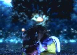 [He kisses her. She doesn't resist. The smooching continues. Pyreflies fly around them. They go underwater, still kissing. They embrace; she looks at him. They hold hands, still looking at each other, while underwater. He brushes her hair. She holds his face. More kissing. FMV ends, scene changes; they're sitting on the shore afterwards]