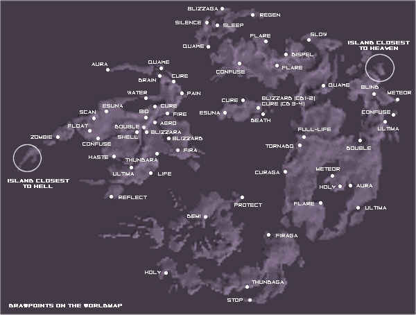 It’s almost impossible to find all draw points on the world map since there are so many, but here’s a map. Remember that you can never see them and you can draw only few spells from them. Some of them regenerate but not all. Notice that most of the draw points are on the edges of continents.