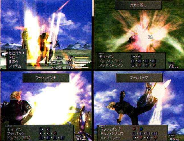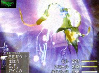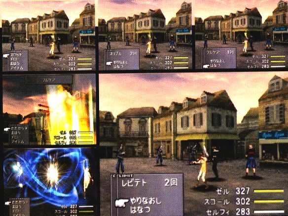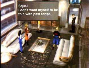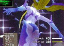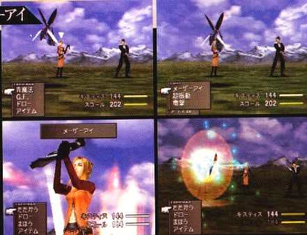 Final Fantasy 8 is to employ portions of the battle system found in Final Fantasy Tactics, where as your party becomes stronger, so do the monsters. This is different from previous Final Fantasy games (other than Tactics), and is going to make winning a battle harder. In accordance to your strength, the enemies attacks will change. For example, the enemy first attacks with 'Power Bomb', in which the monster catches Squall and lifts him above its head. In the second attack, the enemy uses 'Dribble' where it makes Squall into a ball and dribbles it. Finally, the party is very strong so the enemy uses 'Shoot', using Squall as a ball and throwing him at the other members of his party.