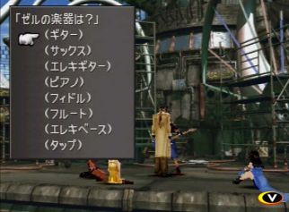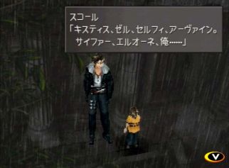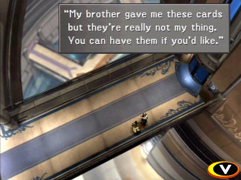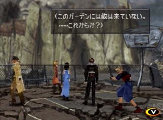 Card Game Screen (Triple Triad) Card Game Menu Squall talks to some female students Someone gives Squall some cards Squall chats on the way to the Training Centre Map of Balamb Garden In the Lobby of the Garden In the library corridor Training in the centre In Squall's bedroom Around the concert area The entrance to Garden's lobby Entrance to the Cave of Fire A battle in the Cave of Fire