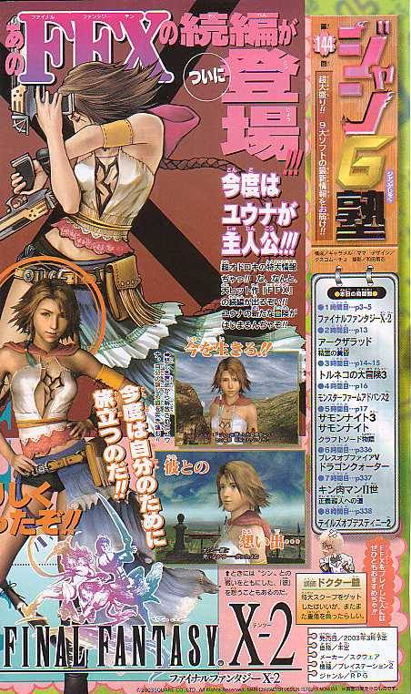 October 21st, 2002 - Not too long ago, a game codenamed "The Final Fantasy X Project", better known as simply "Final Fantasy X" came to Japan and the United States, then six months later the Europeans got their copy. Love it or hate it, Square has comfirmed and released pictures of the sequel to one of the most sucessful Final Fantasy games to date. Complaints? Sure, but look at the PlayStation 2 line-up; money is in the sequels.