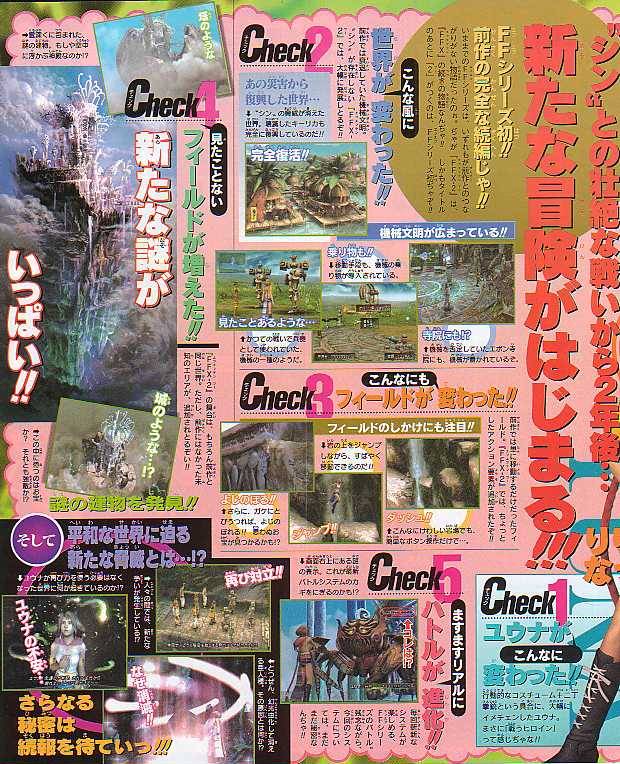 You want news on the game, well here it is. Tidus is nowhere in sight, instead Yuna takes lead as the main character, and possible major characters are Lulu and Rikku. Little is known on the gameplay though, it will most probably be RPG format, but could be an adventure in the form of Ominshua or Tombi with a few RPG elements. From the scenes, we have seen Yuna jumping, which is a brand new Final Fantasy feature (other than the Dragoons) and a couple of bosses. Most shocking of all is Yuna's appearence. She no longer looks like she did, this time our Yuna is a scatily clad woman, breasts and tight gear, the lot, but the most shocking is that fact she is carrying a pair of guns. It appears there is an absence of Auron, Kimahri and Tidus, oh well, not many are fans of those three anyay, but it would be good to see Wakka back, go on, give him his own game.